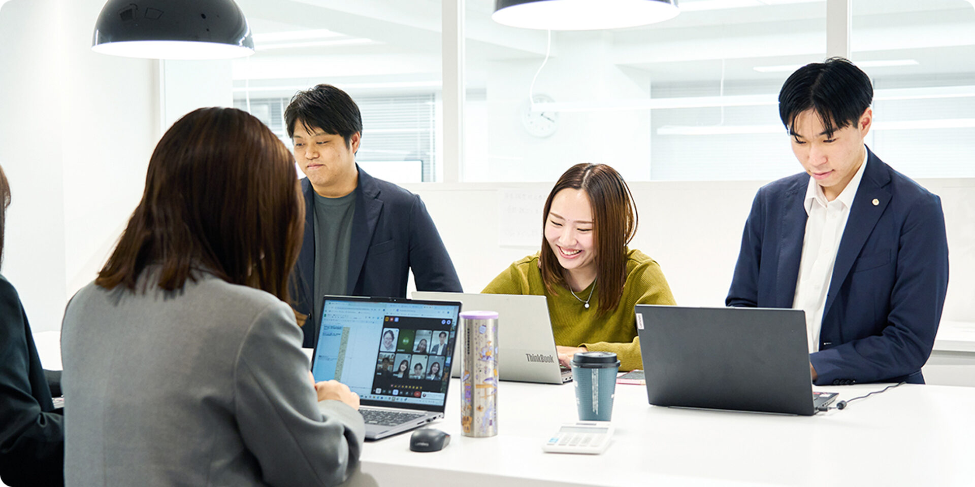 営業も、新卒のみなさんには大いに期待しています。主体的に営業提案を行ない、現場から事業を押し上げる「ボトムアップ型」の営業組織。提案した人が事業を動かす、そんな環境をつくっていきたいです。